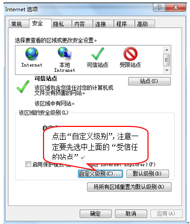3、点击绿色的“可信站点”的图片,如下图: