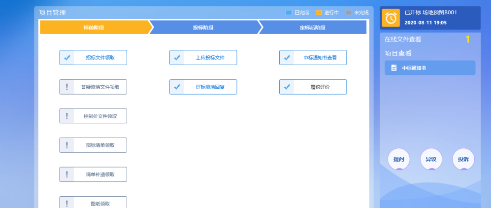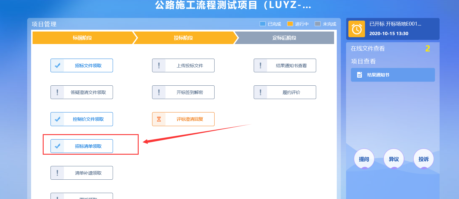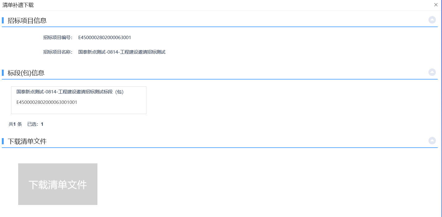 功能说明:投标人已领取对应招标清单文件。