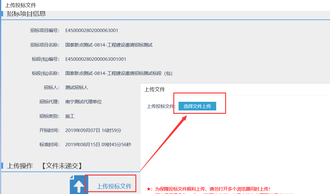 功能说明:上传投标文件