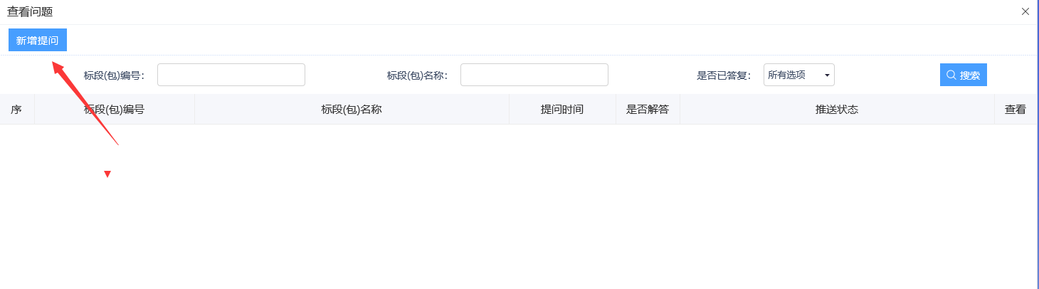 2、在弹出的页面显示提问列表,如要新增提问,点击左上角的新增提问,如下图: