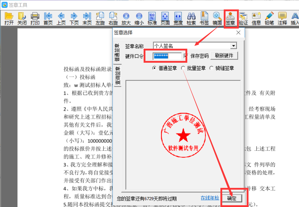 如果能成功加盖印章,并且有勾显示,则证明证书Key没有问题,如下图: