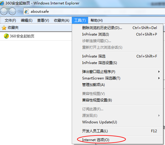 1、打开浏览器,在“工具”菜单→“Internet选项”,如下图: