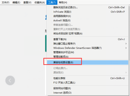 1、在windows工具栏中点击兼容性视图设置选项,如下图: