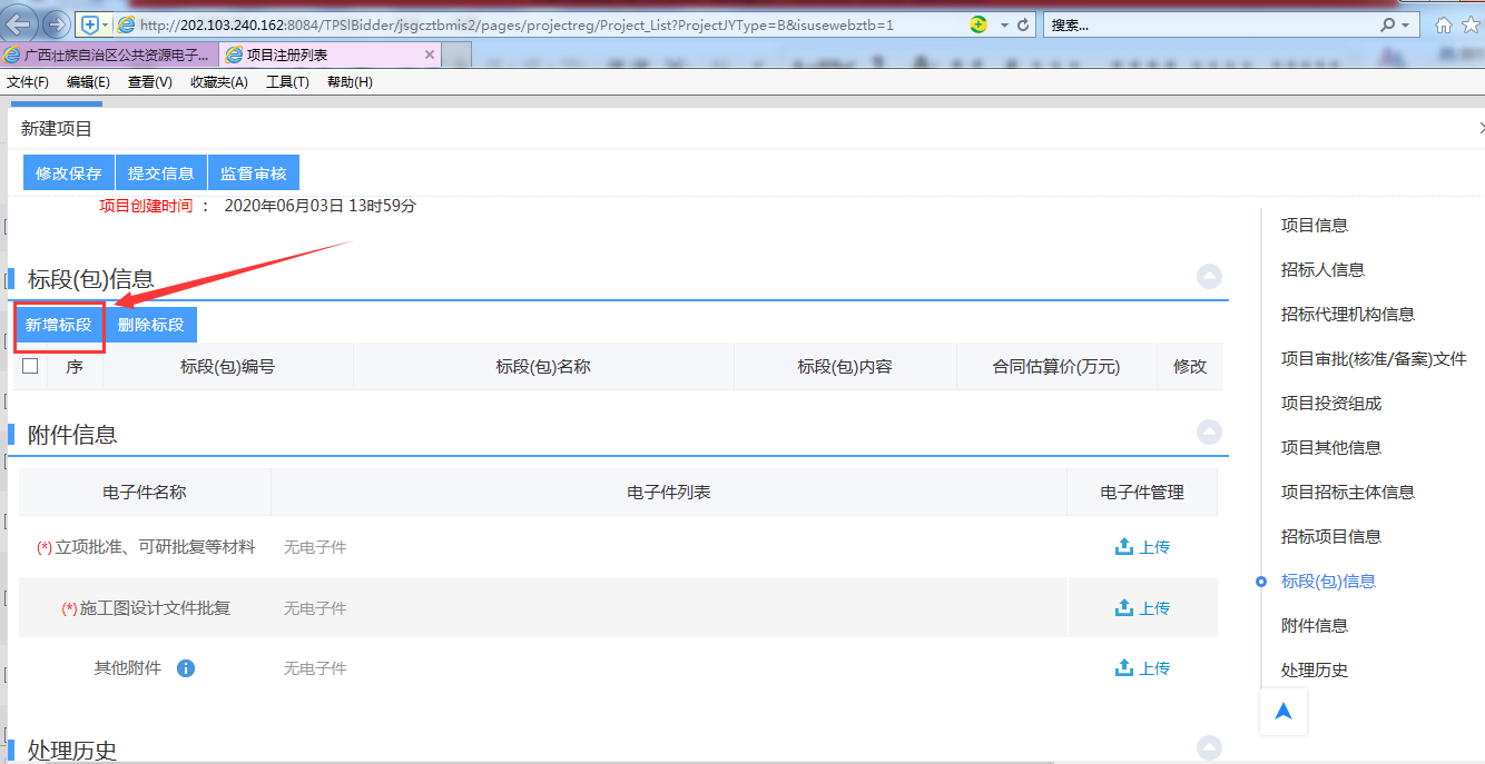 ③项目注册,招标情形字段选择国有资金控股或占主导地位的依法招标,开标时间离招标文件发售时间不少于20天。