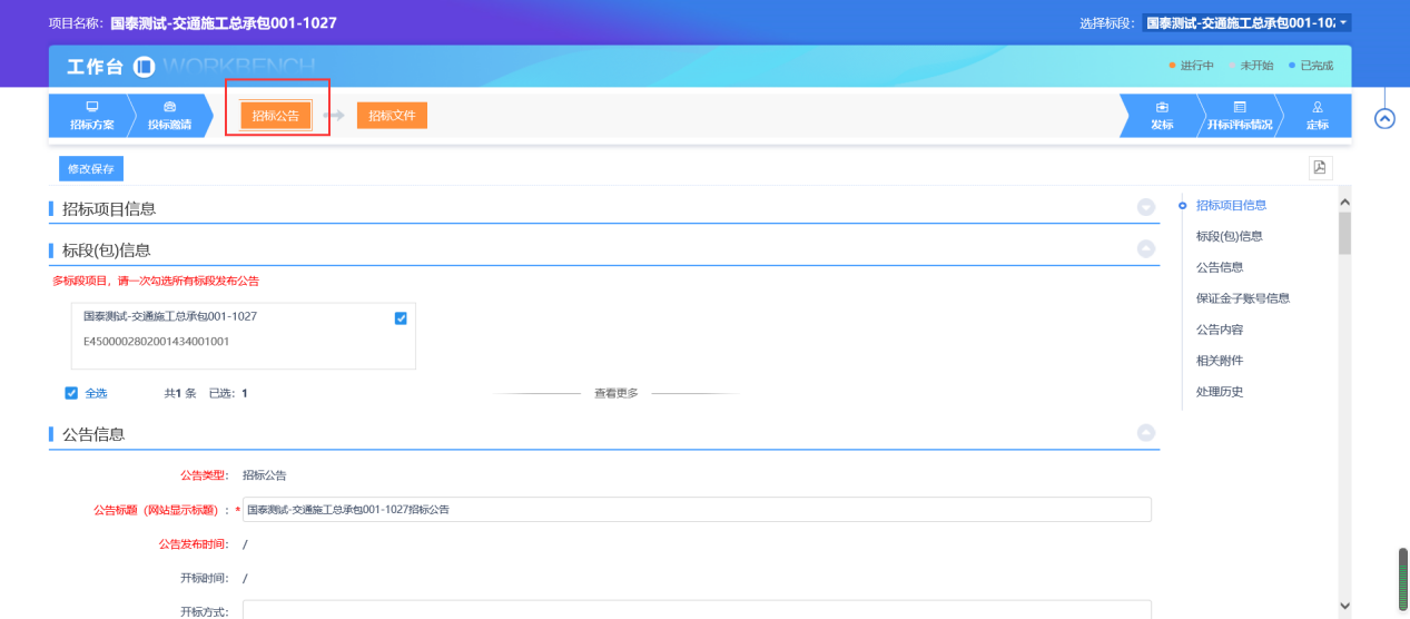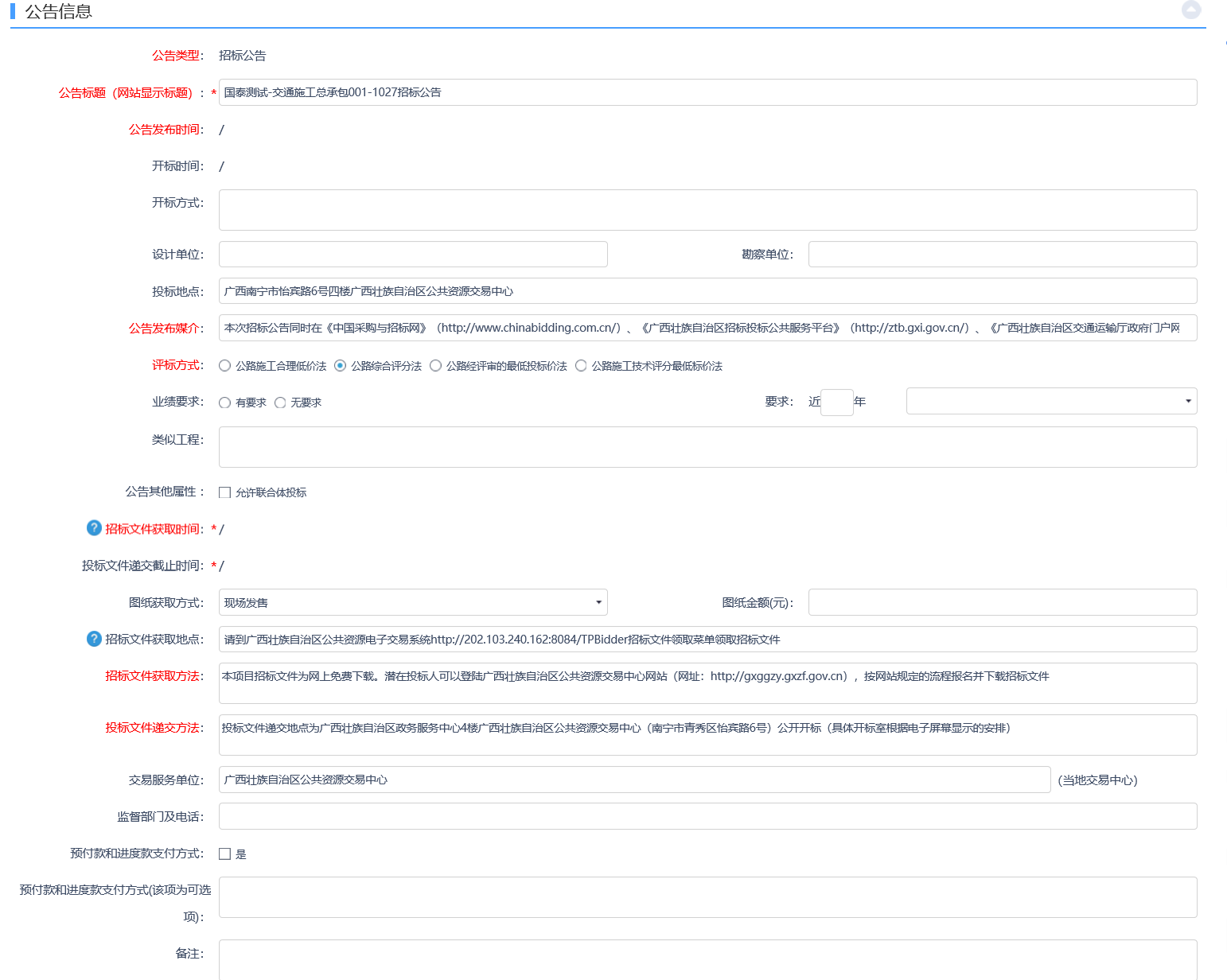 注:交易中心确认开标场地后,招标公告、招标文件自动发布,并将开标时间反填至招标公告中。