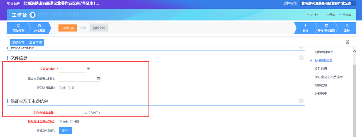 点击【制作】按钮,跳转至招标文件制作页面,点击【确定】,即可打开招标文件制作的界面。