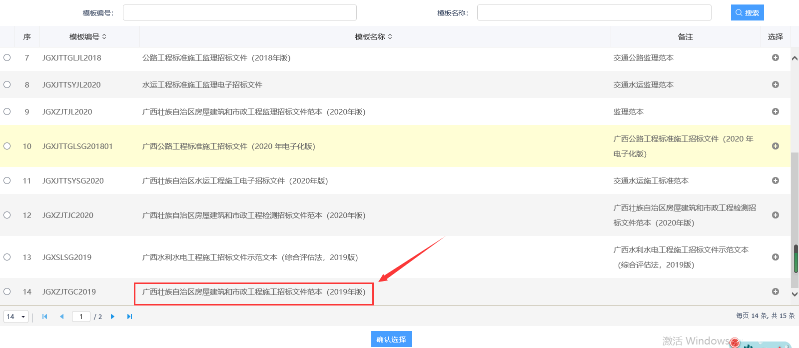 选择对应的房建市政施工范本,然后‘确认选择’: