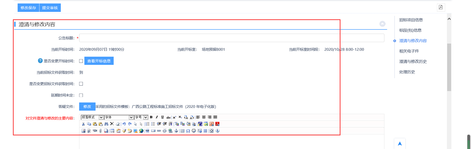 基本功能:对招标文件进行澄清或者修改,可以多次澄清。