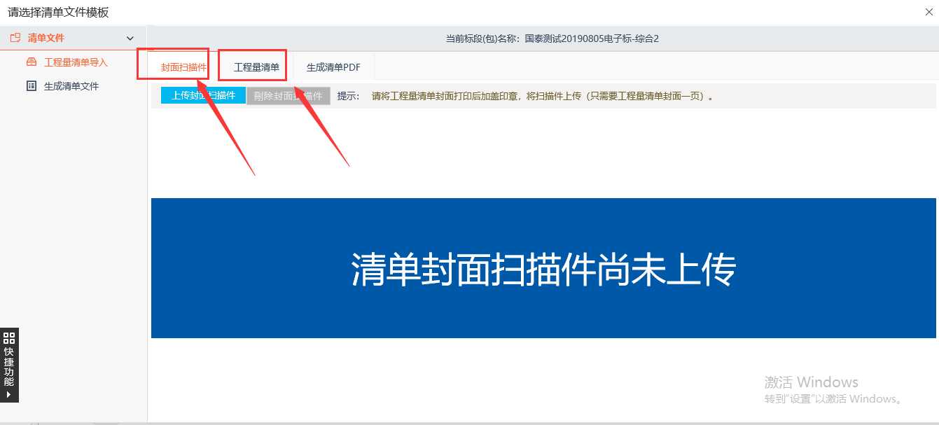 3、工程量清单导入-》上传封面扫描件、工程量清单后,点击生成清单PDF: