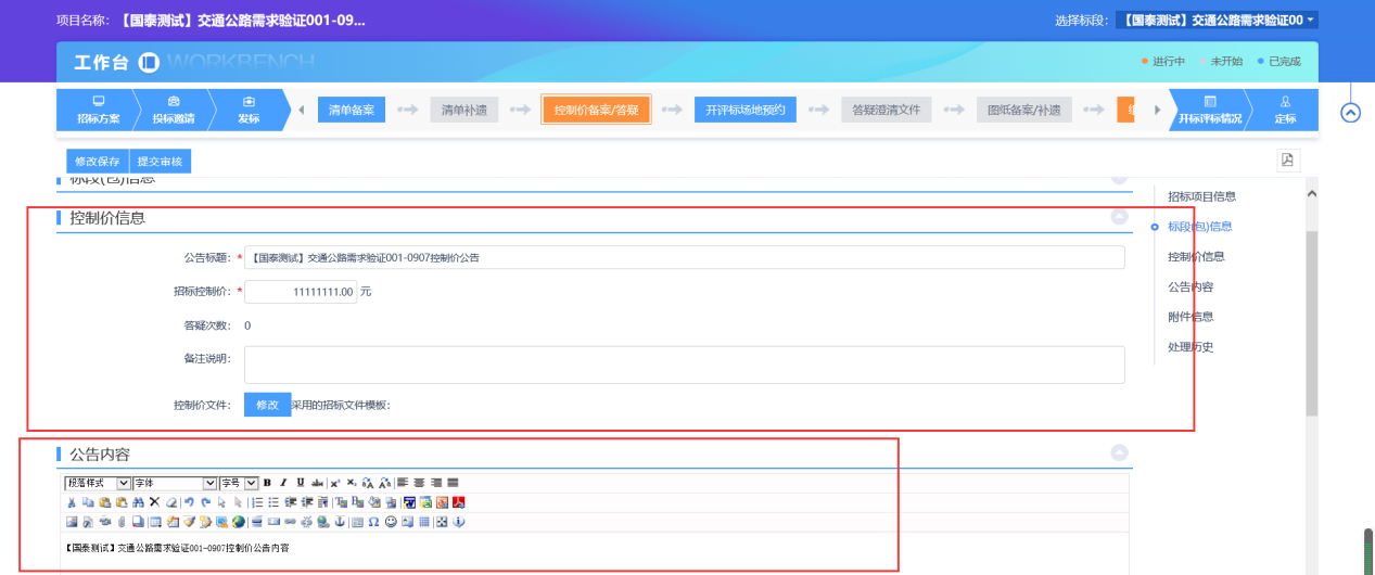 注:公告提交后直接备案通过,但不直接发布到外网,必须做了场地预约,且场地预约审核通过后,再将招标公告发布到外网。