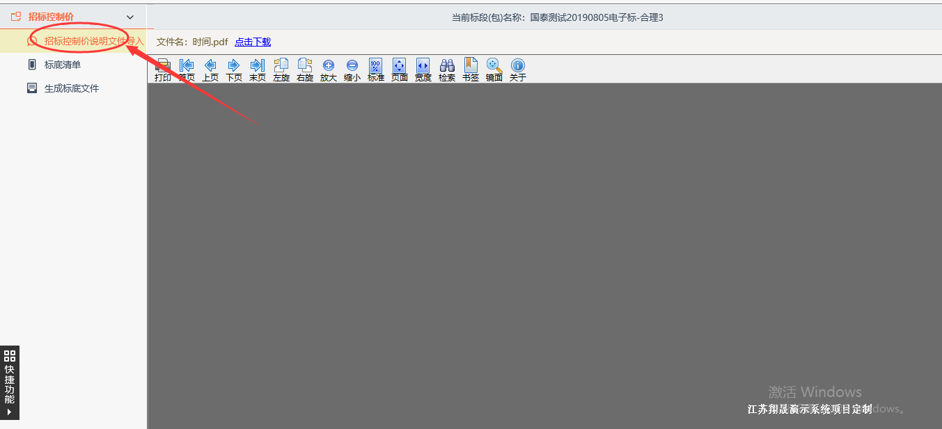 1、点击“发标—招标控制价文件”菜单,进入招标控制价文件制作页面,如下图: