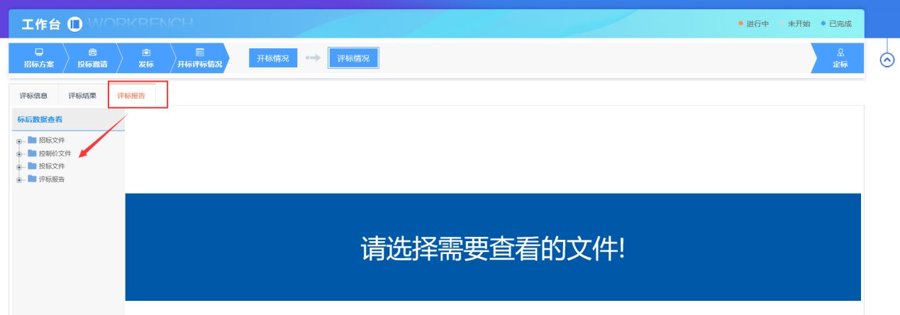 1、点击“评标信息”菜单,进入评标情况页面,如下图: