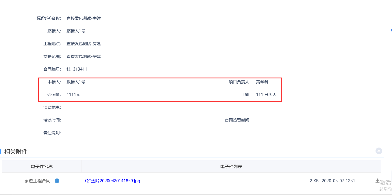 3、填写中标人信息、项目经理,上传合同附件,完成后点击“提交审核按钮”,提交后直接通过,抄送财务,无需审核。