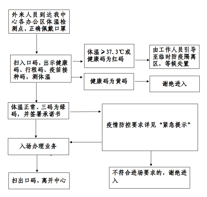 三、外来人员在进场前需规范佩戴口罩,扫入口码并出示健康码、行程码、疫苗接种绿码,主动配合测温,签署承诺书,出示核酸检测报告等证明材料。