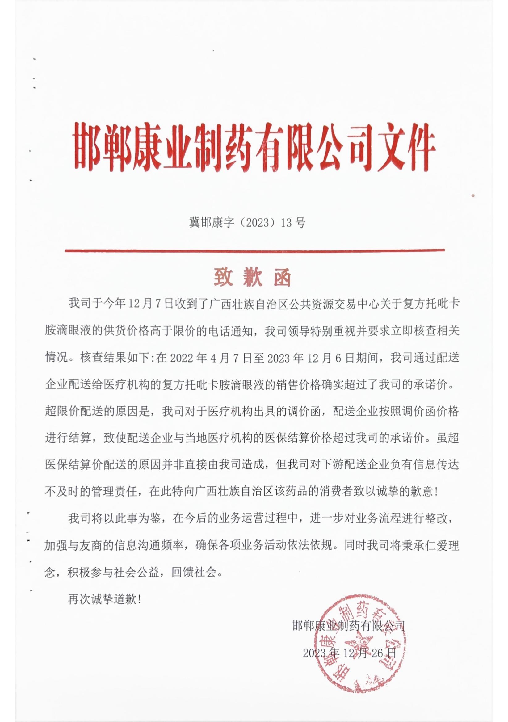 致歉函