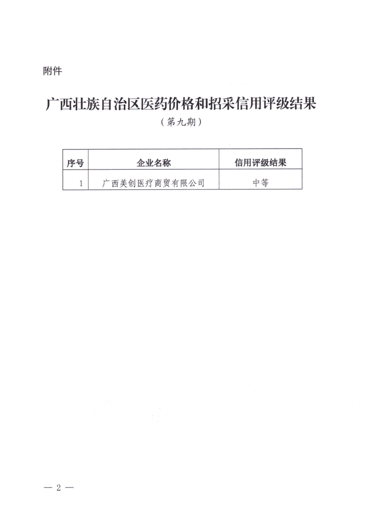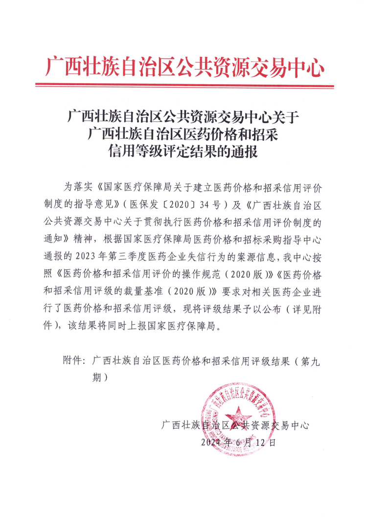 关于广西壮族自治区医药价格和招采信用等级评定结果的通报(第九期)