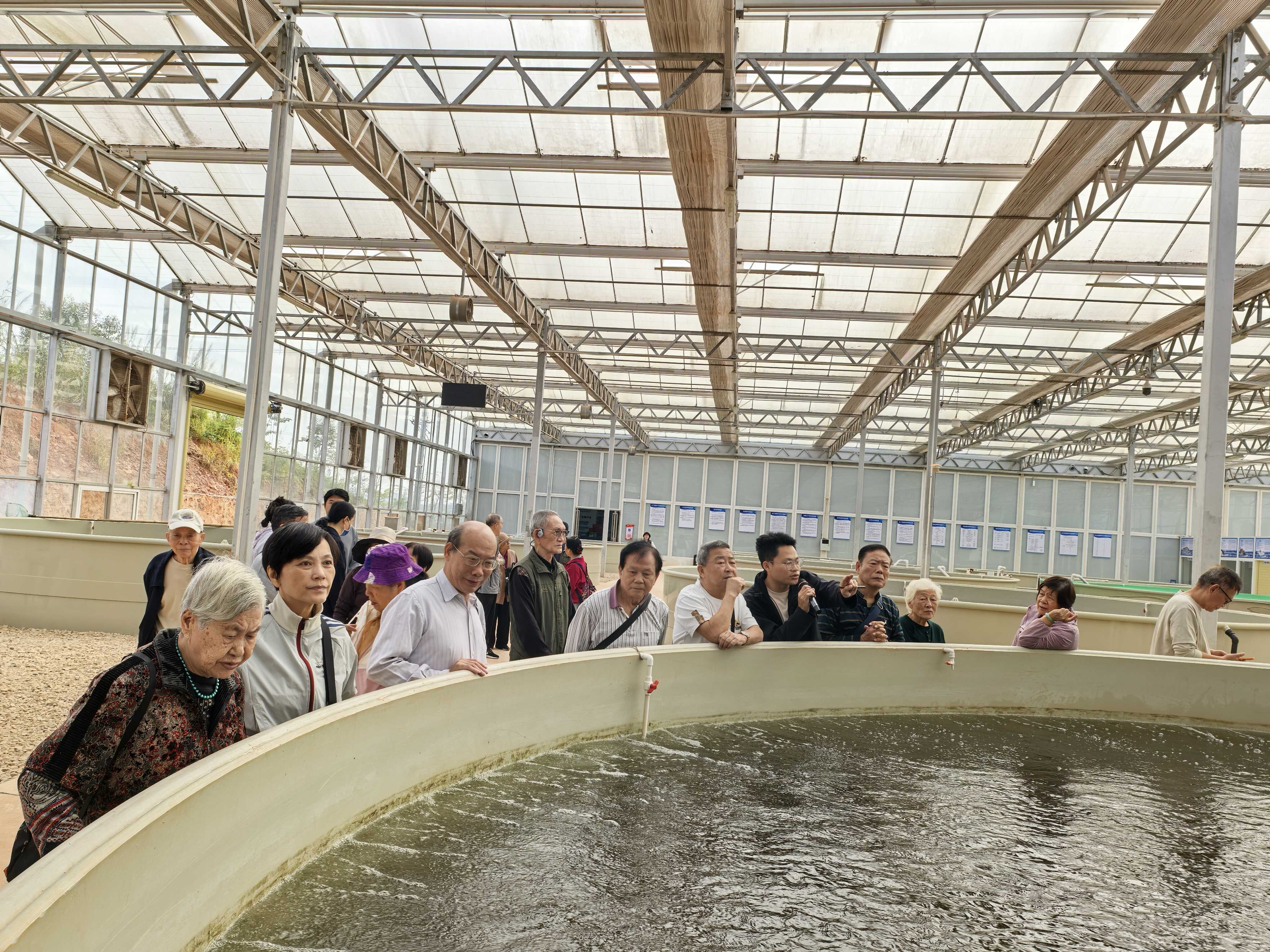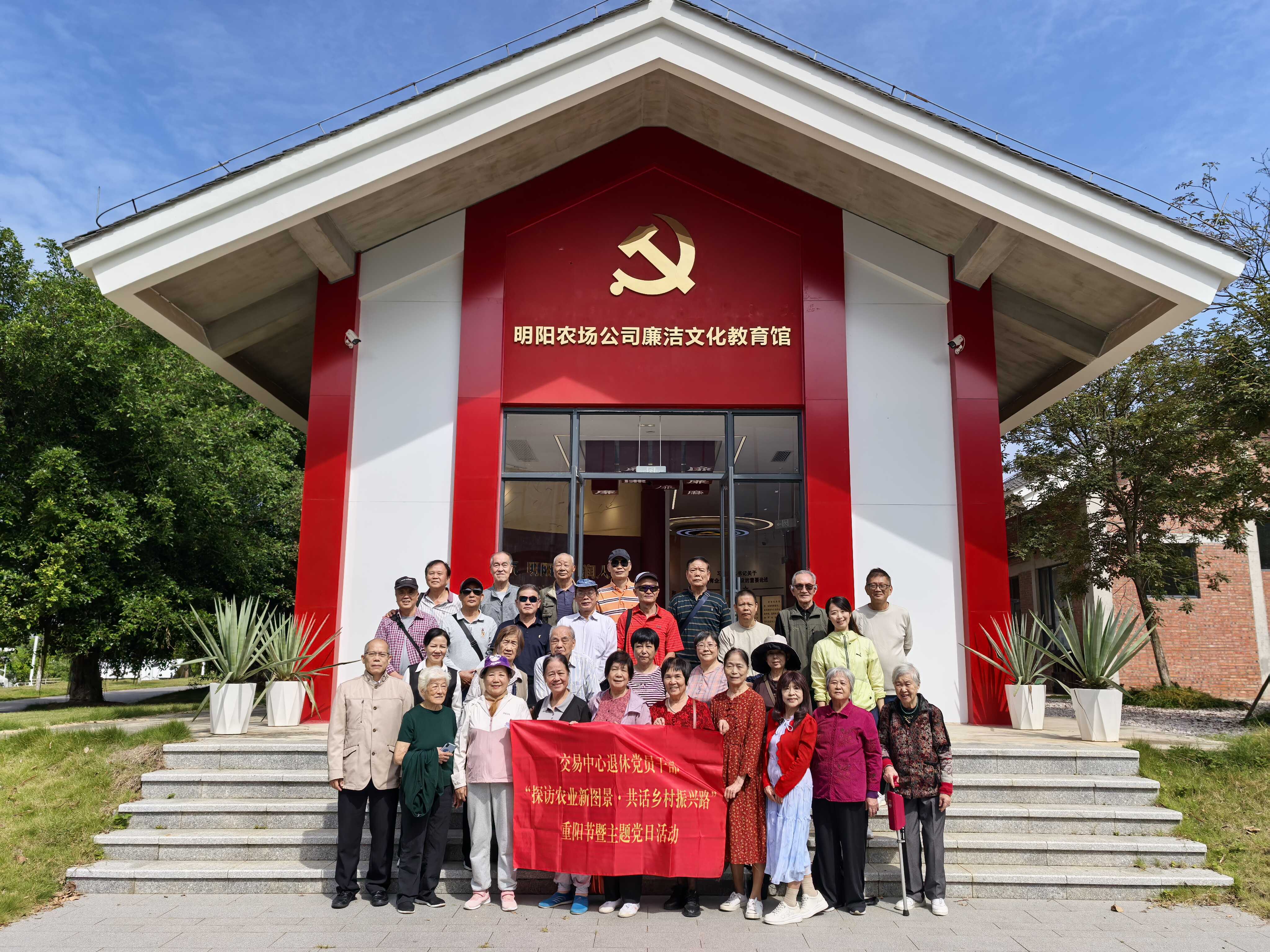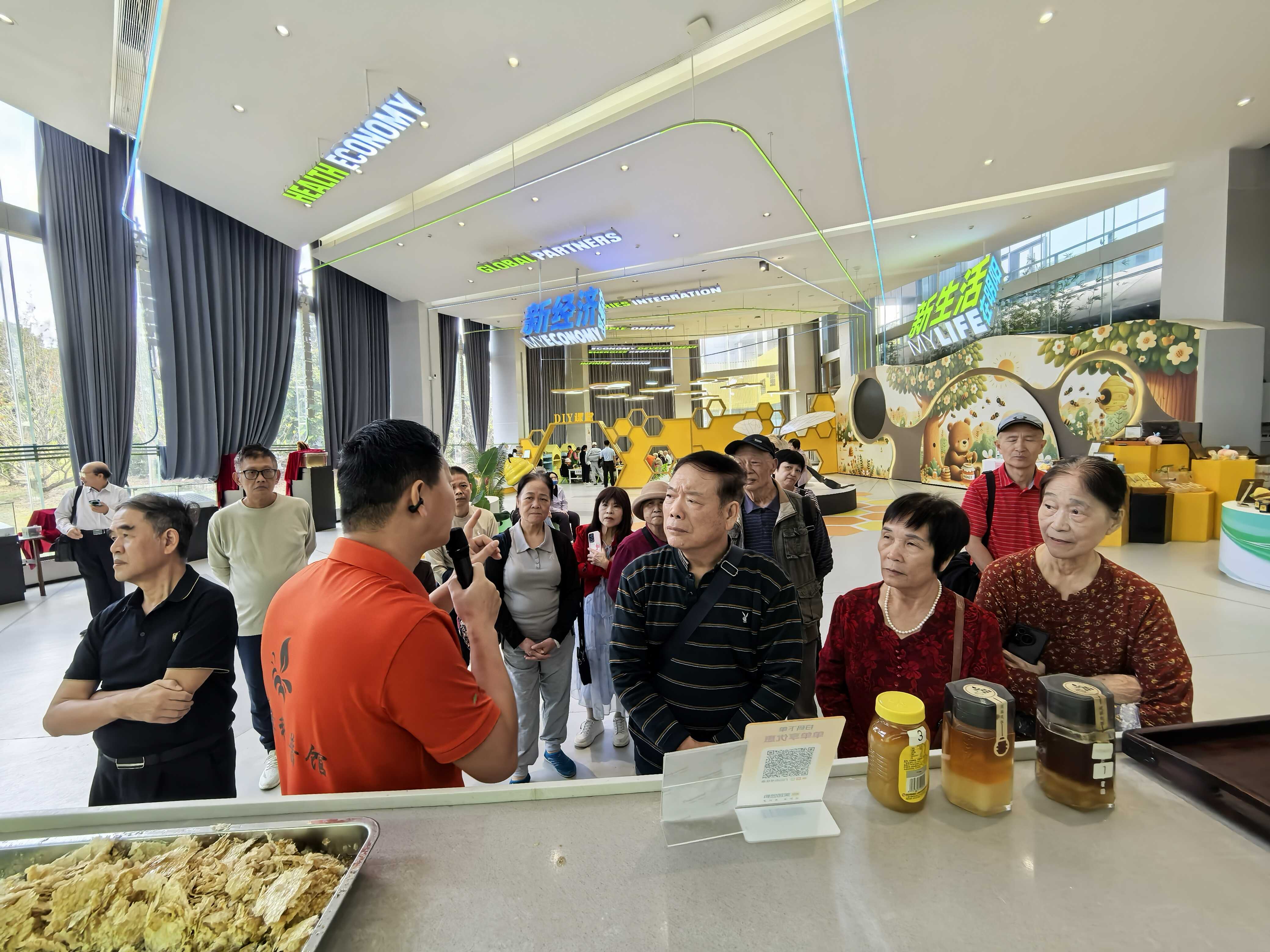 活动中,退休党员干部精神矍铄、笑语盈盈,在轻松愉悦的氛围中尽享重阳之乐,彰显出积极向上的晚年风采。在广西农垦明阳现代设施渔业养殖基地,数字管理控制平台展现着现代农业科技的魅力,他们不时驻足询问,眼中满是对产业创新发展的赞叹。在蜜蜂科普馆,生动详实的图文讲解着蜜蜂的生态奥秘,展示区里陈列的蜂巢标本、蜂蜡工艺品让人目不暇接。来到明阳农场廉洁文化教育馆,“桂垦廉韵”主题展将一个个鲜活的廉政案例生动呈现,退休党员干部或凝神观看,或低声交流,在沉浸式的教育中接受着心灵的洗礼,也更加坚定永葆政治本色的信念。自由活动环节,退休党员干部结伴漫步于露营核心区,欣赏着周边的自然风光。黄松涛同志与退休党员干部亲切交谈,倾听他们对单位发展的建议。